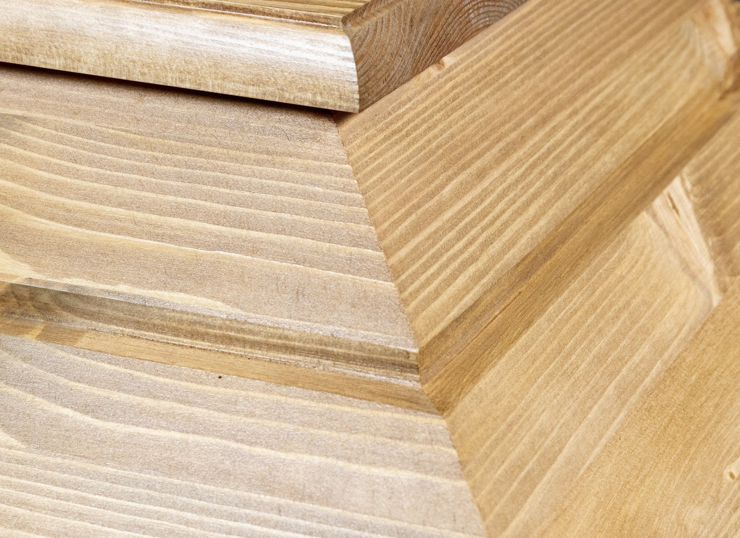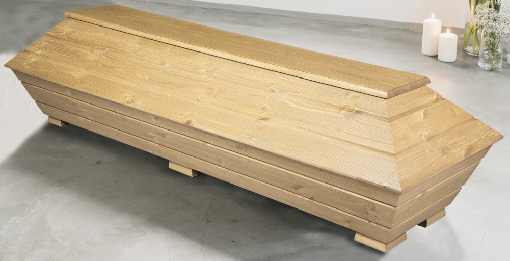 Hieman patinoituneen puun sävyinen, pelkistetyn linjakas honka-arkku huokuu levollisuutta ja rauhaa. Harjalauta korostaa ryhdikästä vaikutelmaa. Huolella valikoitua, terveoksaista puuta.