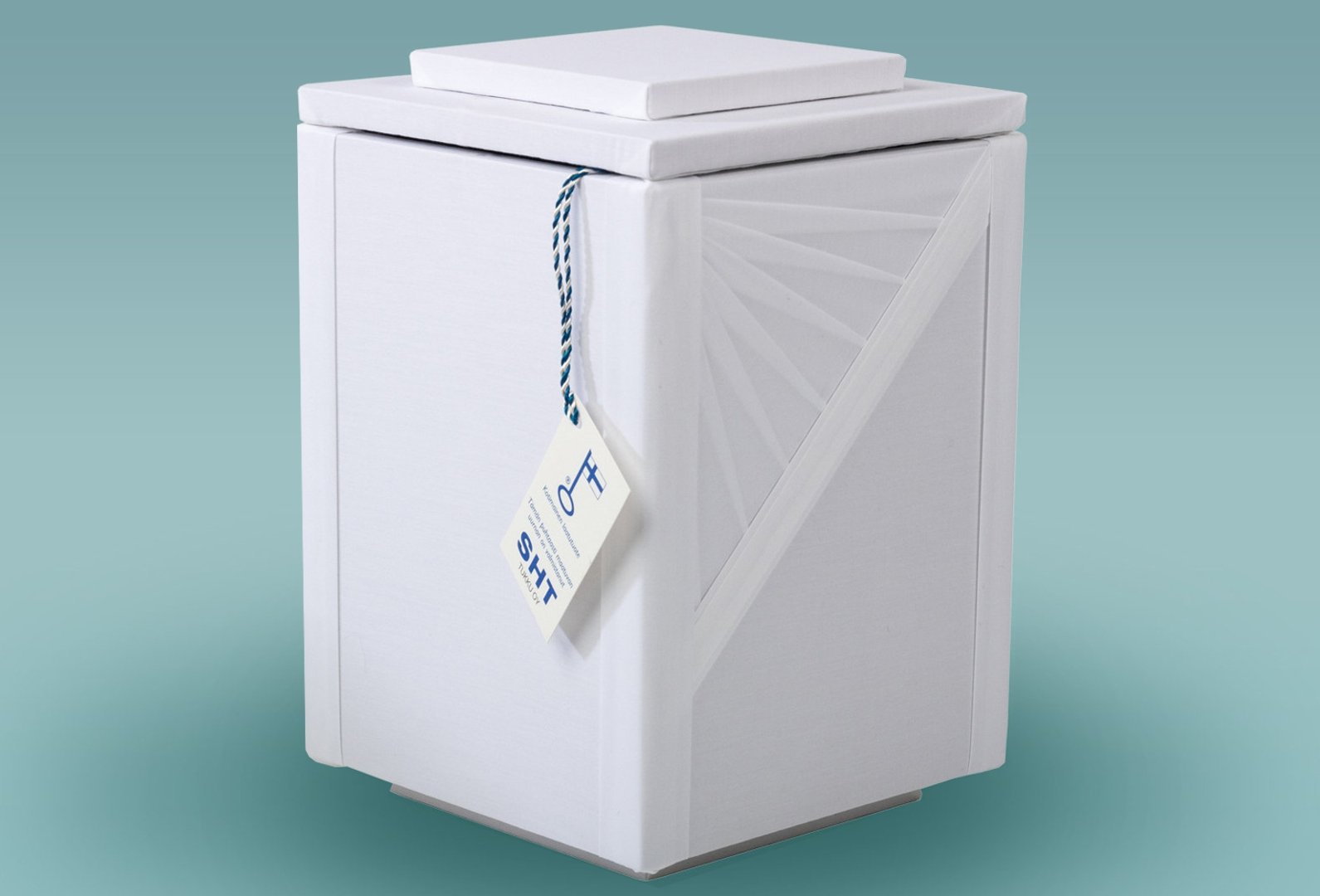 Tuotenumero: 011041 Punkalaitumella käsityönä valmistettu puuvillaverhoiltu uurna. Koristeena kauniisti laskostetut